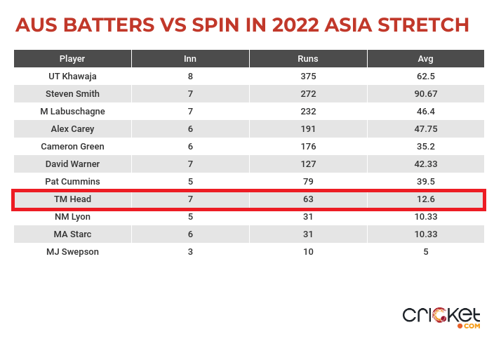 This is Head’s first tour of Sri Lanka and in a way, it’s true that he cannot be judged on the basis of 3 innings, but he’s bombed across the entire Asia stretch (3 Tests vs Pakistan, 2 vs Sri Lanka), averaging 15.17 across 7 innings.