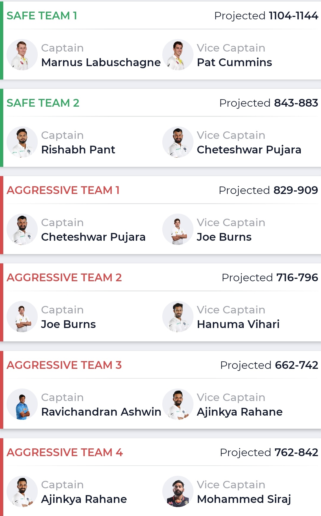While you could go for the above team, you also have the option of choosing your own team from Cricket.com’s Fantasy Research Centre. Based on algorithms we come up with six different teams that could fetch crucial points.