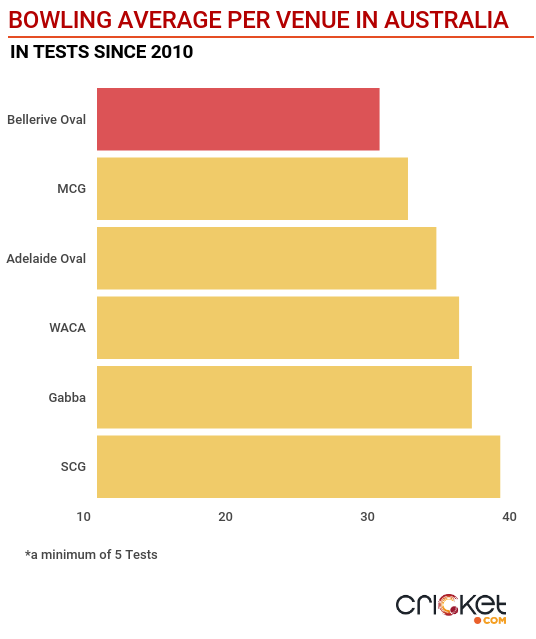 The venue offers a level of uncertainty for both sides. Since 2010, it is the most bowling-friendly ground among the six Test venues in Australia with five Tests or more. 80 percent of these wickets are picked by pace bowlers.