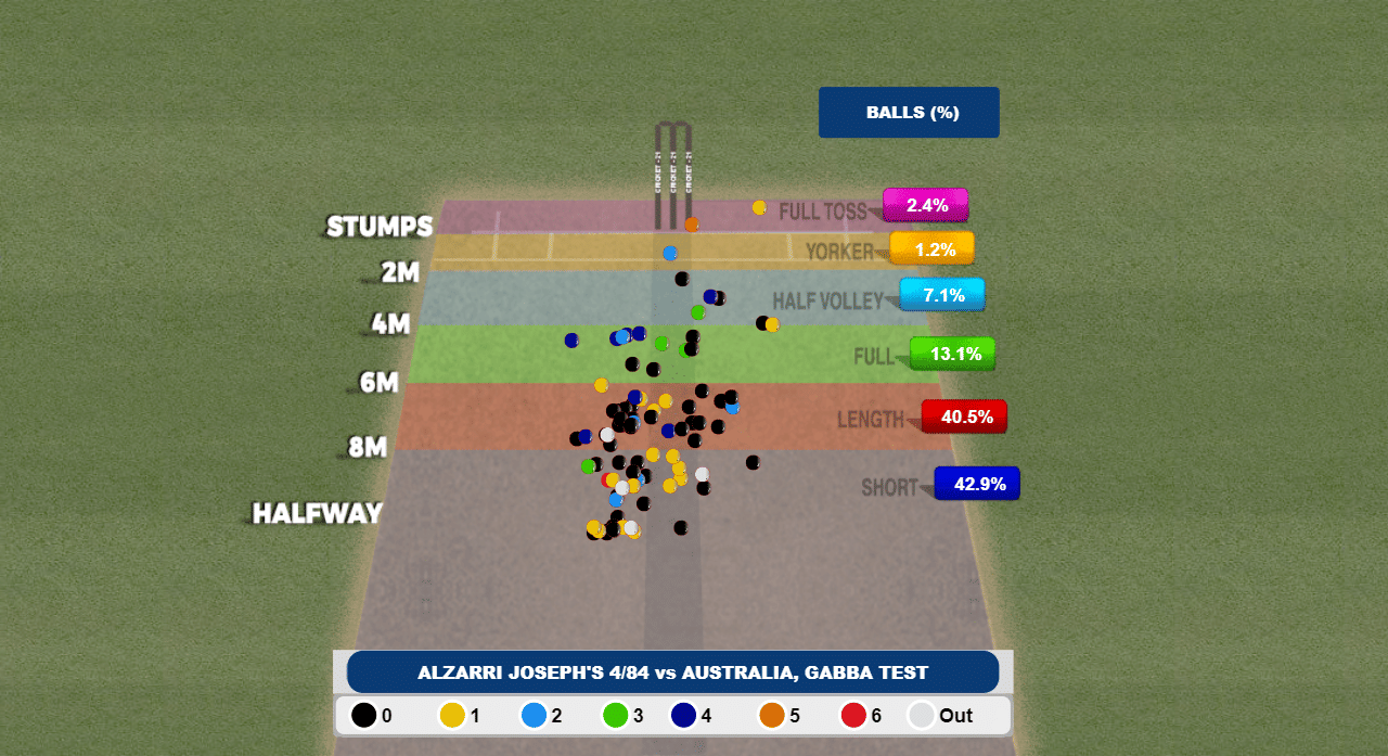 42.9% of his deliveries were short in the innings, and 40.5% of his deliveries were in the length region. Three out of the four wickets that he scalped were from short deliveries, and if not for accuracy against Mitchell Marsh, Australia could have been in a much better position.