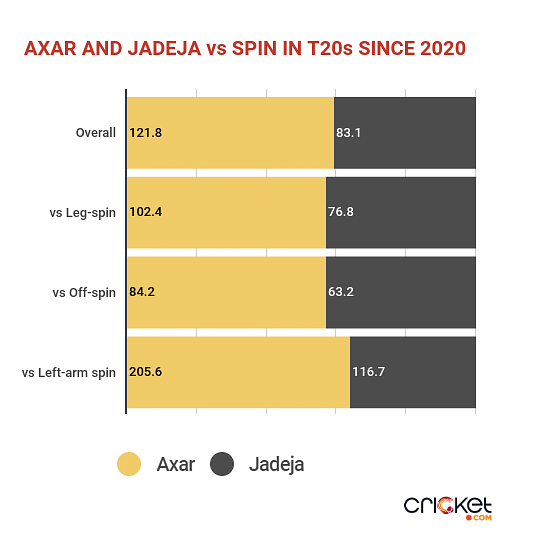 Axar himself is a pretty good pace-hitter, but Jadeja has been so good in the past three years that his record dwarfs that of the former.