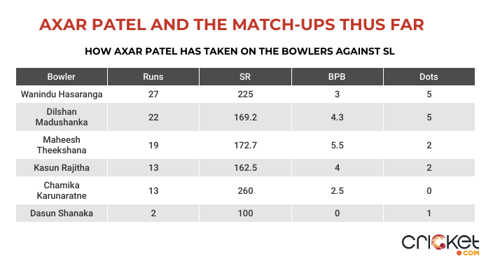 To prove to the last living souls that he is indeed more than a capable all-rounder, Axar stepped out once again but with a situation that demanded a lot. A lot. At the half-way stage in this clash, Dasun Shanaka had already proved a point; he showed the world what his batting pyrotechnics are but that came with a condition: only against pace.