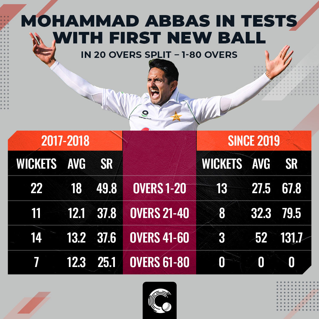 Quantum of difference : Mohammad Abbas with the new and old cherrySince Mohammad Abbas’ breakthrough year in 2018, his numbers paint a sorry tale, especially considering how he had averaged 13.76 during his peak. In the years that succeeded his best, the right-arm seam bowler picked up 26 wickets in total, 12 less than what he did in just 2018 alone. Not just that, his performance has seen a vivid downgrade, with his average reading 44.63, 31.30 and 33.60, which only shows that his impact with the ball has withered.