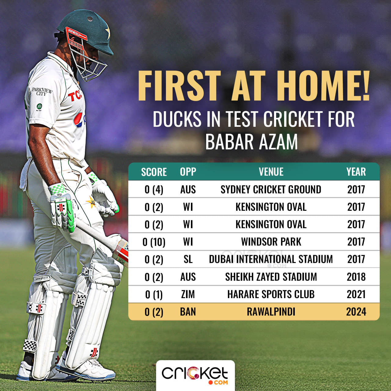 This was overall the eighth duck of Babar's Test career and his first since 2021.