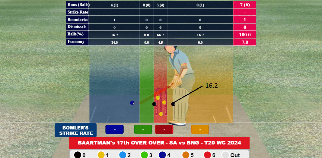 16.2: Ottneil Baartman bowled a length delivery at Mahmudullah’s pads. Mahmudullah, trying to flick, missed the ball altogether and it hit his pad.