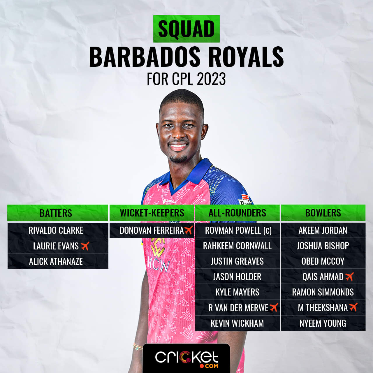 Rassie van der Dussen is unavailable for the season and is replaced by Evans. Theekshana will also miss the first half of CPL 2023 due to international commitments, with Qais Ahmad filling in for him.