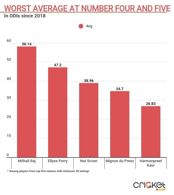 However, after six games in the land of the Kiwis, their middle-order is still struggling to find their mojo, mainly due to the inconsistent performance of vice-captain Harmanpreet Kaur.
