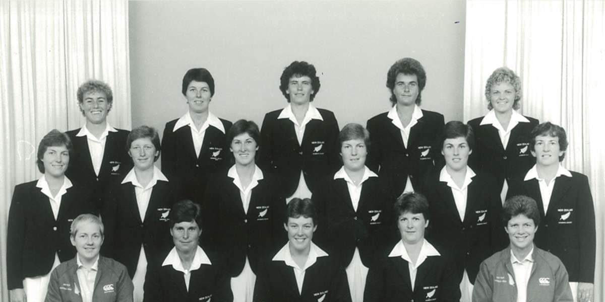 (Image courtesy: New Zealand Cricket Museum. Middle row (L to R) Rosemary Signal, Nancy Williams, Lois Simpson, Elizabeth Signal, Jackie Clark, Sue Rattray)