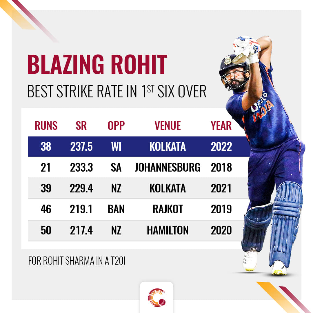In reply, Rohit came out all cylinders firing. In the first six overs, India clubbed 58 runs out of which Rohit carted 38 runs at a strike rate of 237.5. The recent millionaire in the IPL auction Ishan Kishan, struggled to get going at the other end. After the dismissal of Rohit, India went through a minor stutter as they lost three quick wickets of Kishan, Virat Kohli and Rishabh Pant. However, an unbeaten partnership of 48 off 26 for the fifth wicket helped India cross the ropes with six wickets in hand and take the lead in the series. Here are a few notable stats from the first T20I: