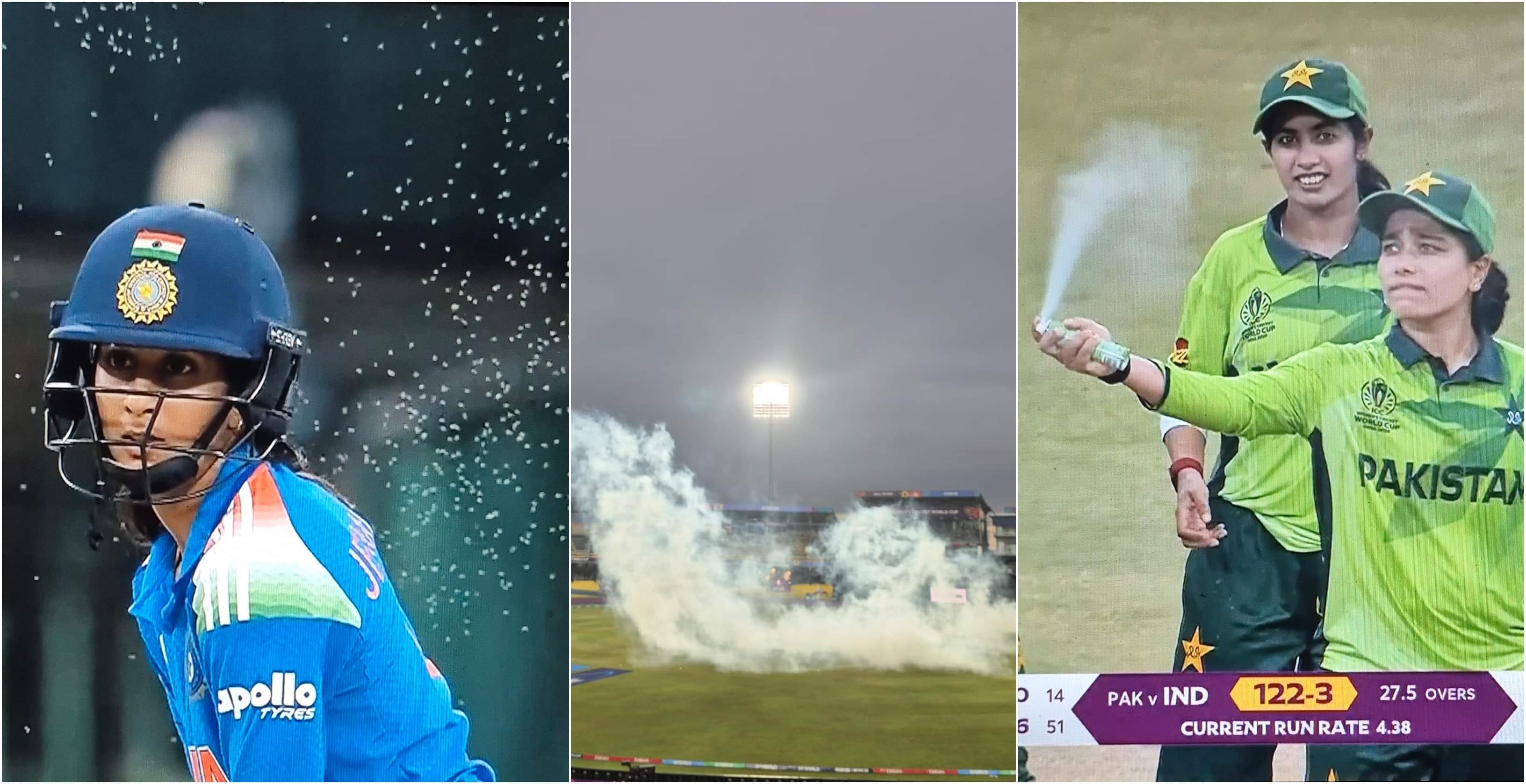 However, the umpires decided to have proper fumigation done after the 34th over, and a worker came in with a proper gas mask and fumigated the areas surrounding the pitch. That interruption eventually led to a break in Jemimah Rodrigues’s rhythm, and she lost her wicket to a poorly executed sweep shot.