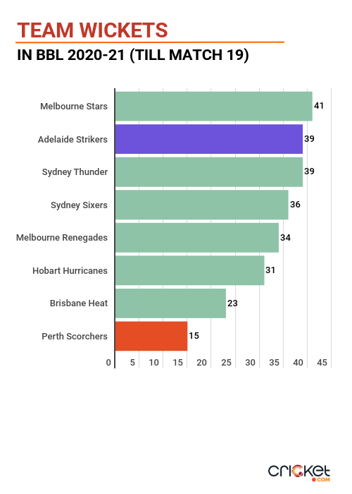 While the Strikers’ bowlers have been formidable when it comes to picking up wickets, the Scorchers are yet to find the right combination of bowlers that could do the job for them.
