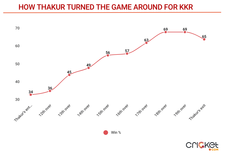 When Shardul Thakur walked out to bat, KKR’s win percentage was 34%, and it was at their home.
