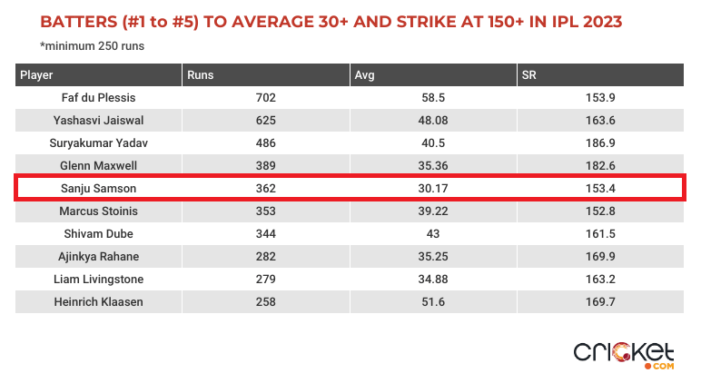 There was added motivation for Samson heading into this season too, having been ignored altogether for the 2022 T20 World Cup. In a way, IPL 2023 was his ticket to being a regular in the Indian T20I set-up — as someone already on the selectors’ radar, he would have secured his place in the squad for at least the rest of the year with an above-average season.