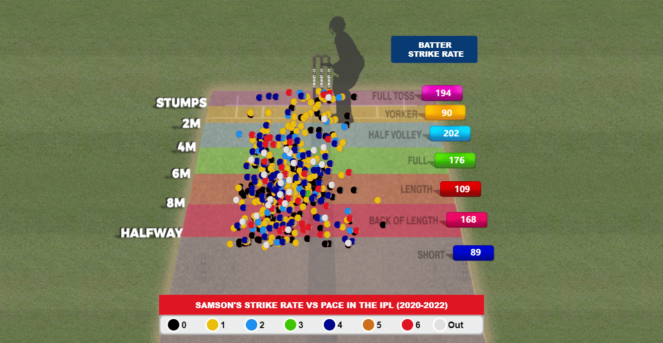 Below is every single ball Samson faced against pace in the IPL between 2020 and 2022.