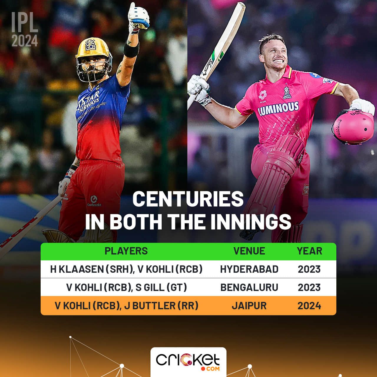 Jos Buttler’s 58-ball ton overpowered Kohli’s knock. Buttler’s poor form (34 runs in last six inn for RR) was a concern for Rajasthan Royals but he found his golden touch with a match-winning hundred in his 100th IPL match. He completed the 184-run chase with a six that took him from 94 to 100.