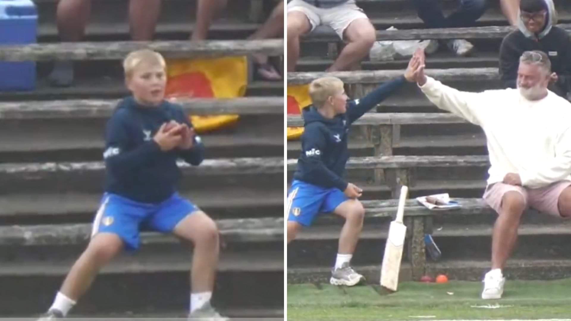 The commentators called it the catch of the day as the boy was quick to release the ball instead of celebrating the moment or trying to keep hold of the ball for a longer moment.