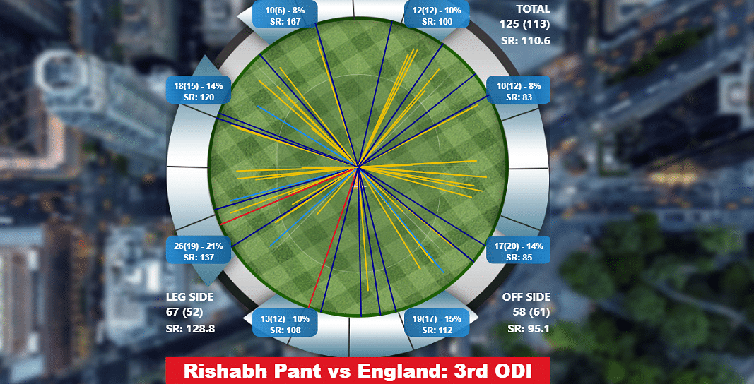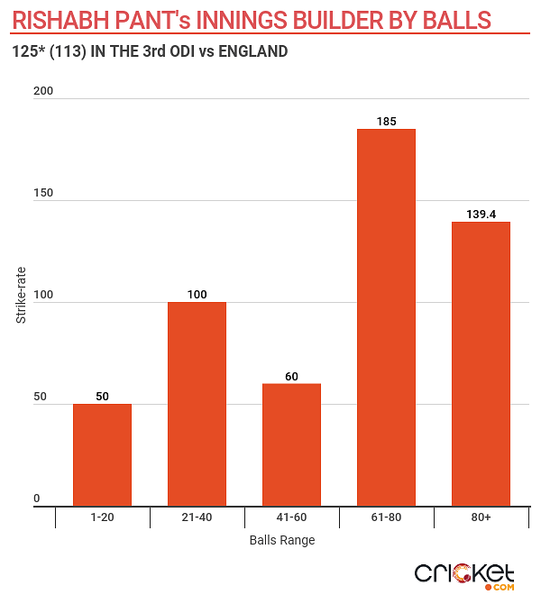 After one point in the knock, Pant was toying with the bowlers and the field. Post completing his maiden ODI hundred off 106 balls, Pant blazed his way to glory, striking David Willey for five fours in a row to finish unbeaten on 125 from 113 deliveries.