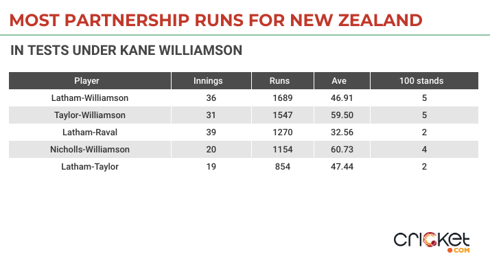 In fact, since Williamson took over as Test captain, the Williamson-Latham duo has churned out the most runs together – 1,689 at 49.61 – putting on over 50 on 12 occasions.