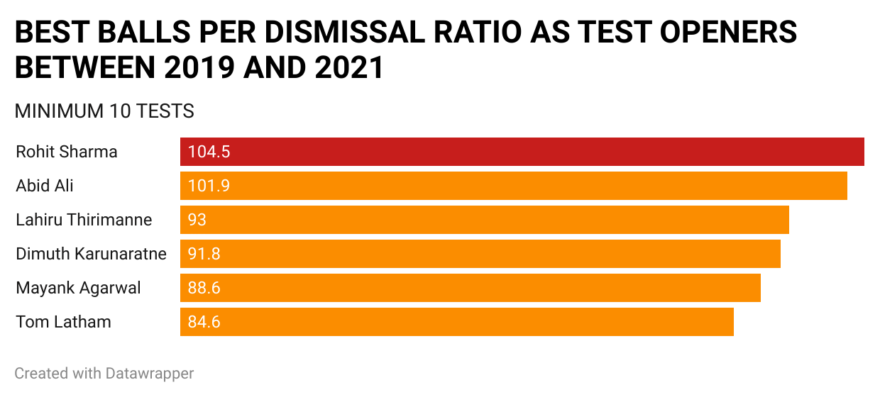 The Mumbaikar focussed on batting long. So much so, that he put on a masterclass of opening the innings in England in 2021. In one of the toughest countries for Test openers, Rohit had a ball-per-dismissal ratio of 123.7 and was the top run-scorer for India.