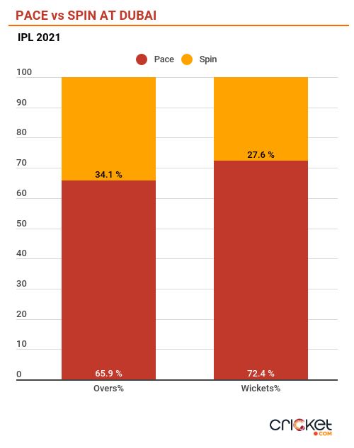 The average first innings score at the Dubai International Stadium is around the 150-run mark. The venue has consistently produced matches that were good for batsmen and for pacers as well. Spinners have been frugal with an economy of 7.1 but have a strike rate of 25.2 to pacers' 18.6. Pacers have claimed 72.4% of the wickets at the venue this season at a better average of 24.6. It is better to pick one of your premier spinners alongside four pacers for the game.