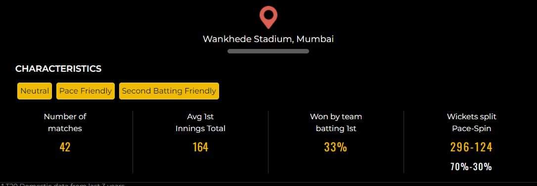 Mumbai’s Wankhede Stadium is a comparatively batting-friendly venue, with the average first innings score being 163. In the last three years, the same characteristic has pretty much been maintained, with the score rising to 164. However, the venue’s average first innings winning score hovers around 178, which means a team can’t just sit tight initially.