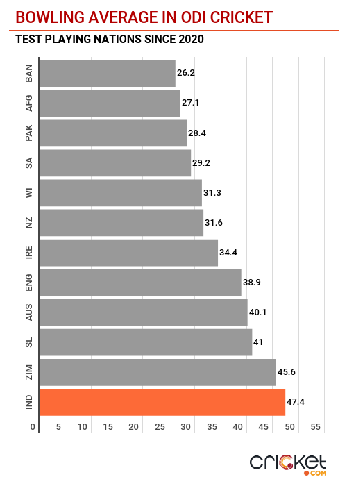Both sides have struggled with the ball in this series but for India, the issues go far back. The home side just cannot find a wicket with the new ball. Since 2020, India have a bowling average of 168.8 runs per wicket in the first 10 overs, easily the worst amongst all countries including Zimbabwe, Nepal and the USA.
