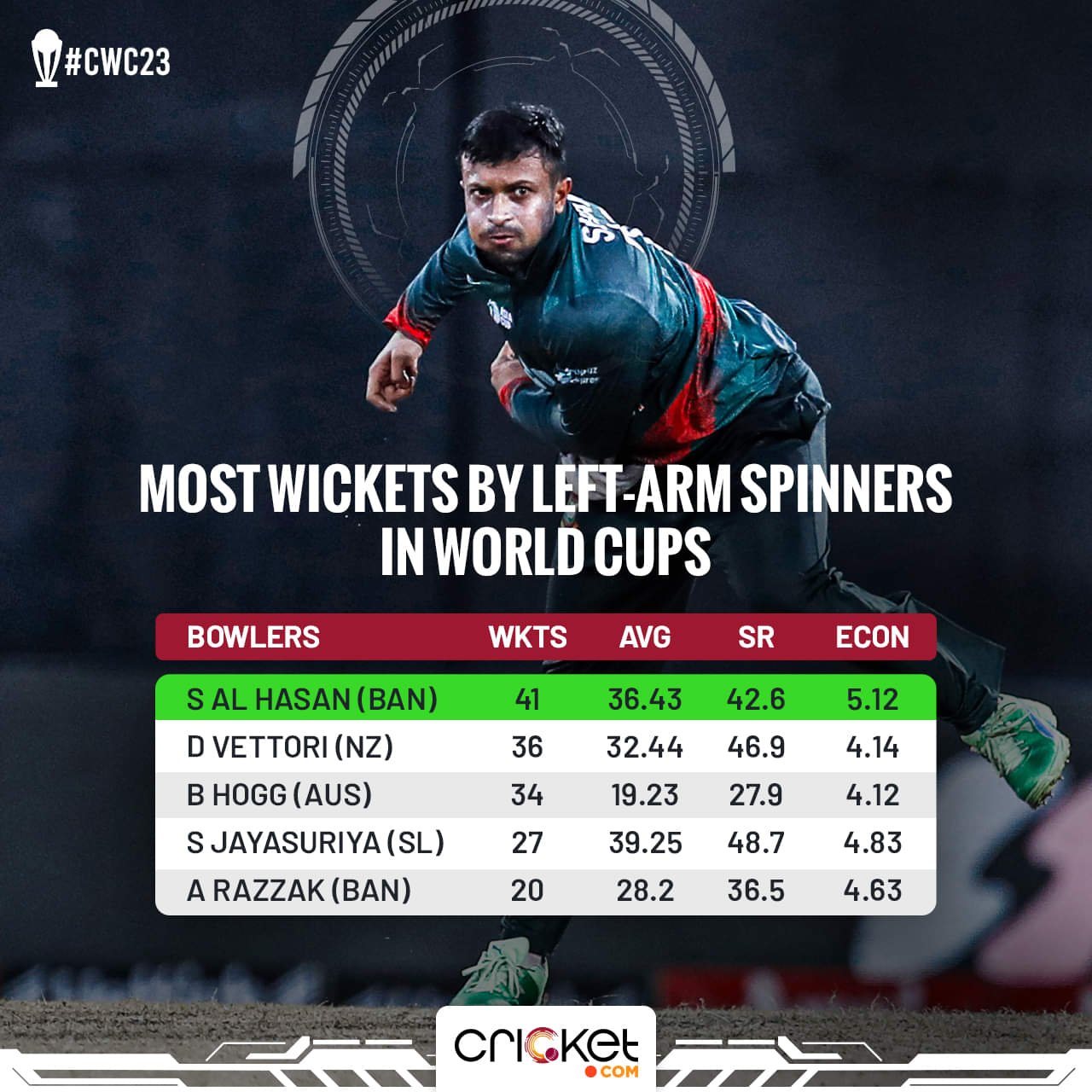 The Bangladesh captain had just gone past Daniel Vettori to become the most successful left-arm spinner in World Cup history. But that is as good as things got for them.