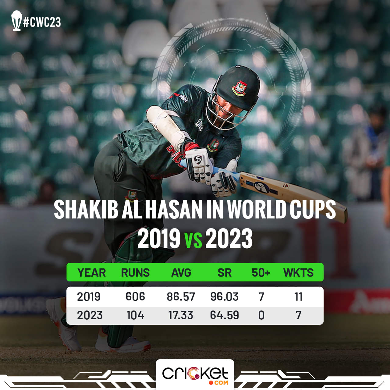 Shakib, and in fact, the entire team, has often blamed the batting for letting them down in the 2023 World Cup. They have lost as many as 16 wickets in the first powerplay – the most for any team – and they have scored at just 4.6 runs in the phase – the worst in the tournament – to make matters dire.