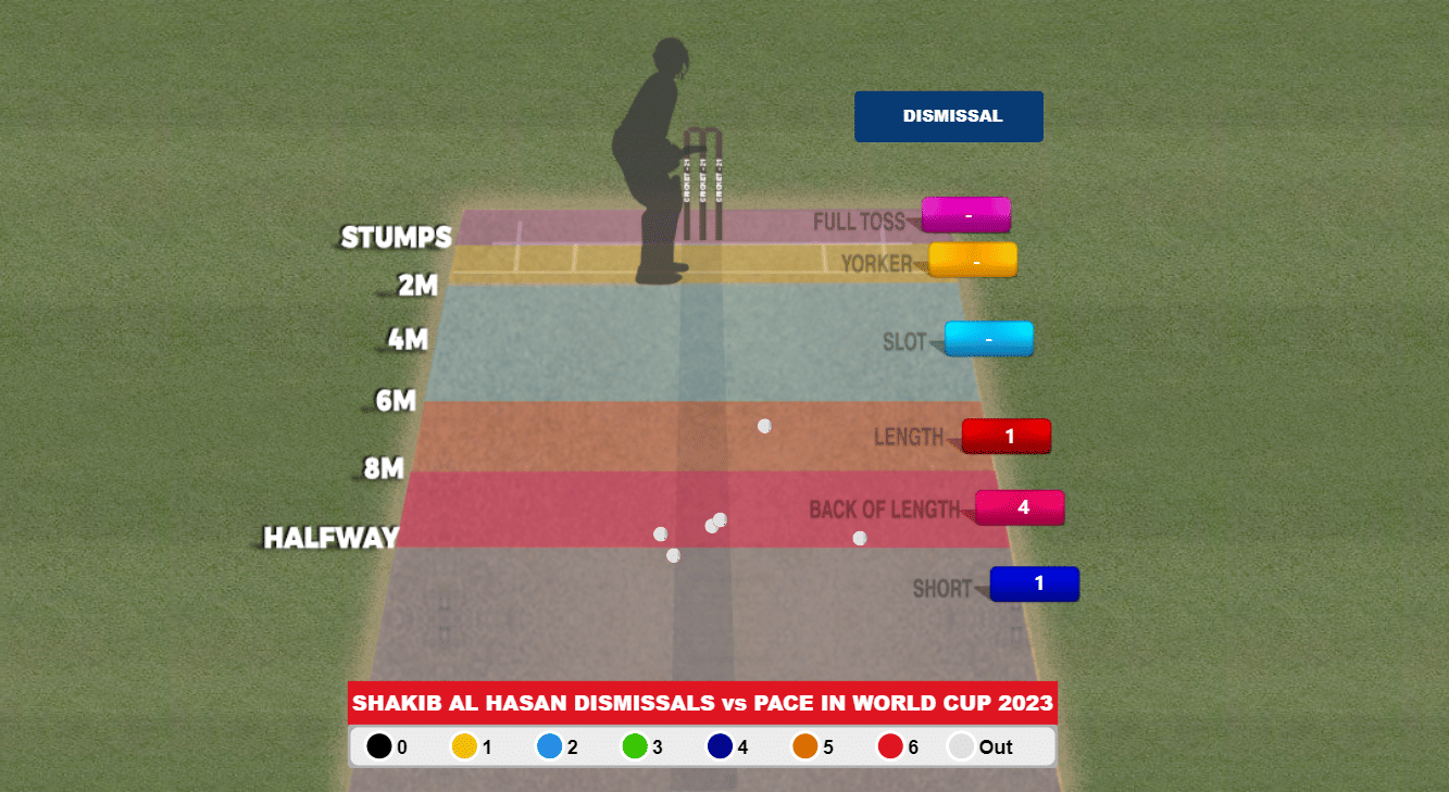 Shakib’s ability to play the short balls has also been contrasting, to say the least. He has been dismissed by pacers on all six occasions so far, all to short deliveries.