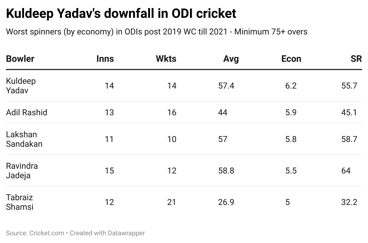In ODIs since the 2019 World Cup and the end of 2021, Kuldeep’s bowling was a tough take on his career. Someone once heralded by the late Shane Warne as India’s best spinner in overseas conditions now had a nosediving career.