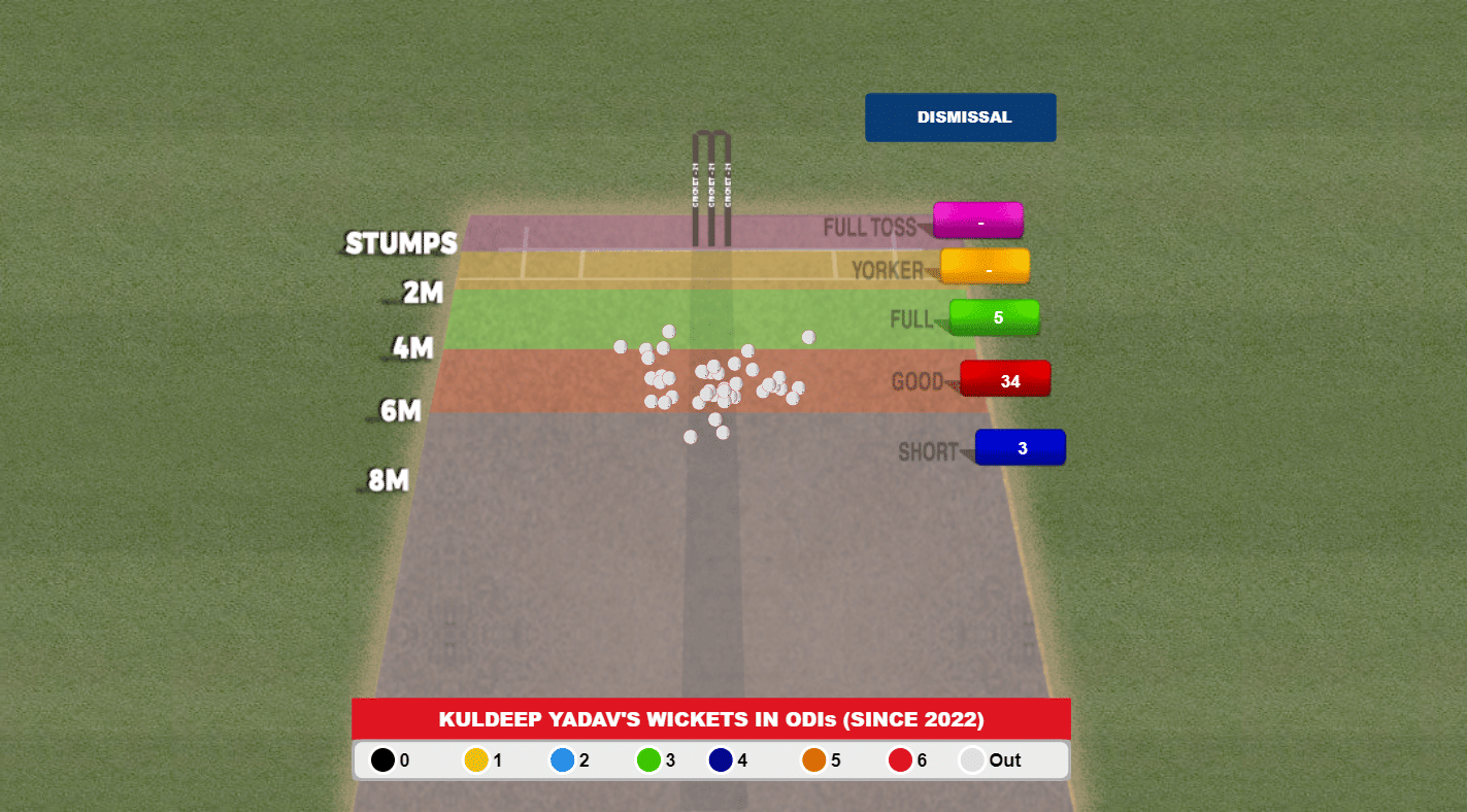 In this case, Kuldeep’s struggle resulted in India having a terrible middle-over patch, resulting in the Indian bowling unit struggling. As a bowling unit, in the presence of Kuldeep, the Men in Blue averaged 42.25 with the ball in the 50-over format, where both their powerplay numbers and the middle-over numbers cost them games.