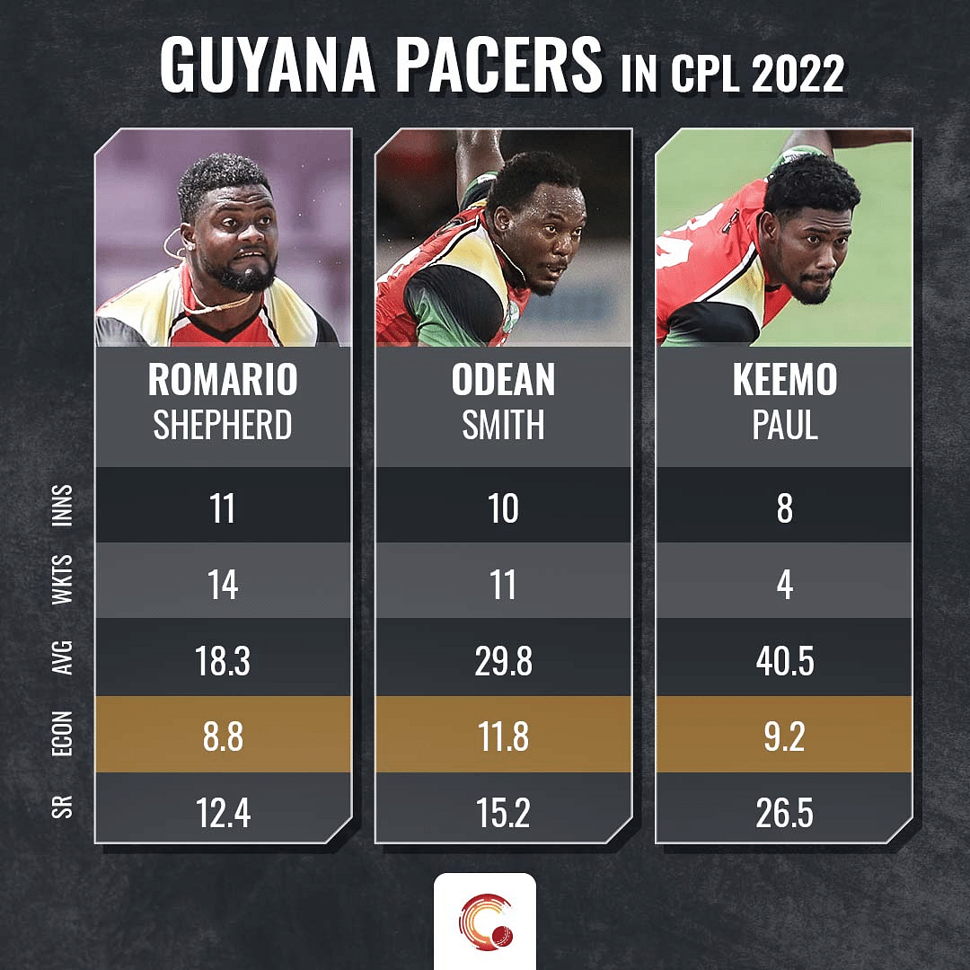 > The seam-bowling all-rounders will be at the helm for the Warriors. They can play as many as four of them - Keemo Paul, Romario Shepherd, Odean Smith and Pretorius. Their presence also extends the batting depth to number nine. Not to forget, Gudakesh Motie can also be a handy contributor with the bat.