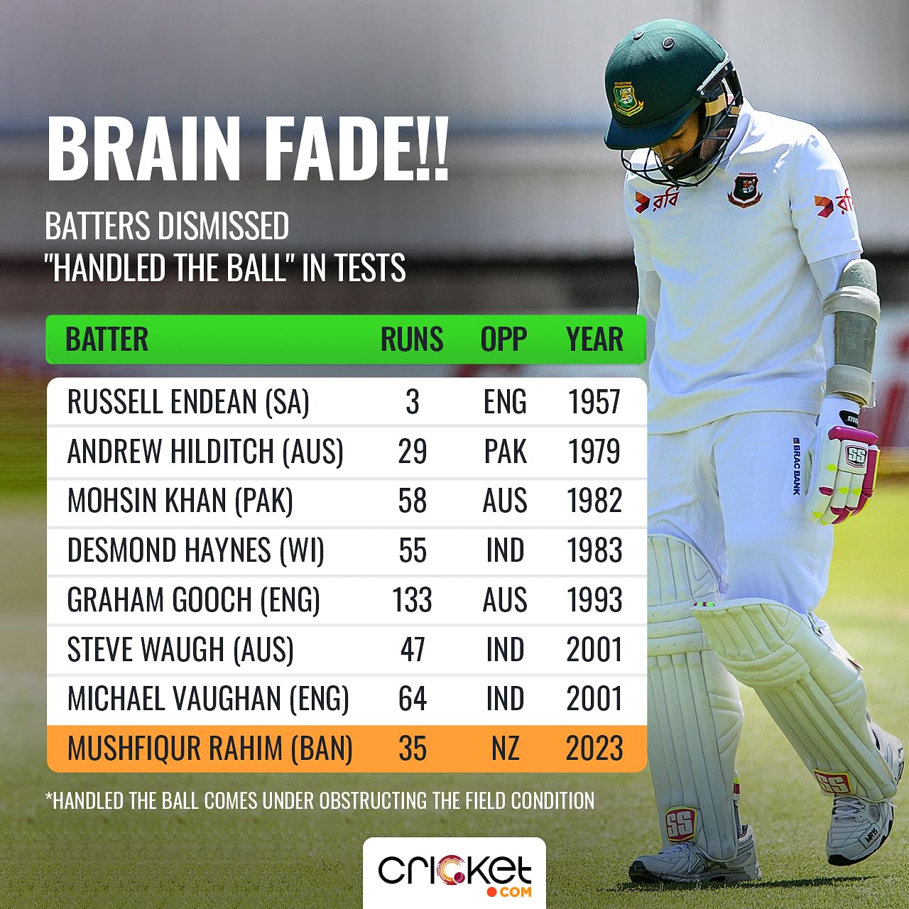 > Mushfiqur Rahim was given out obstructing the field in the Mirpur Test, which makes me wonder why Bangladesh have to be involved in every bizarre cricket dismissal.