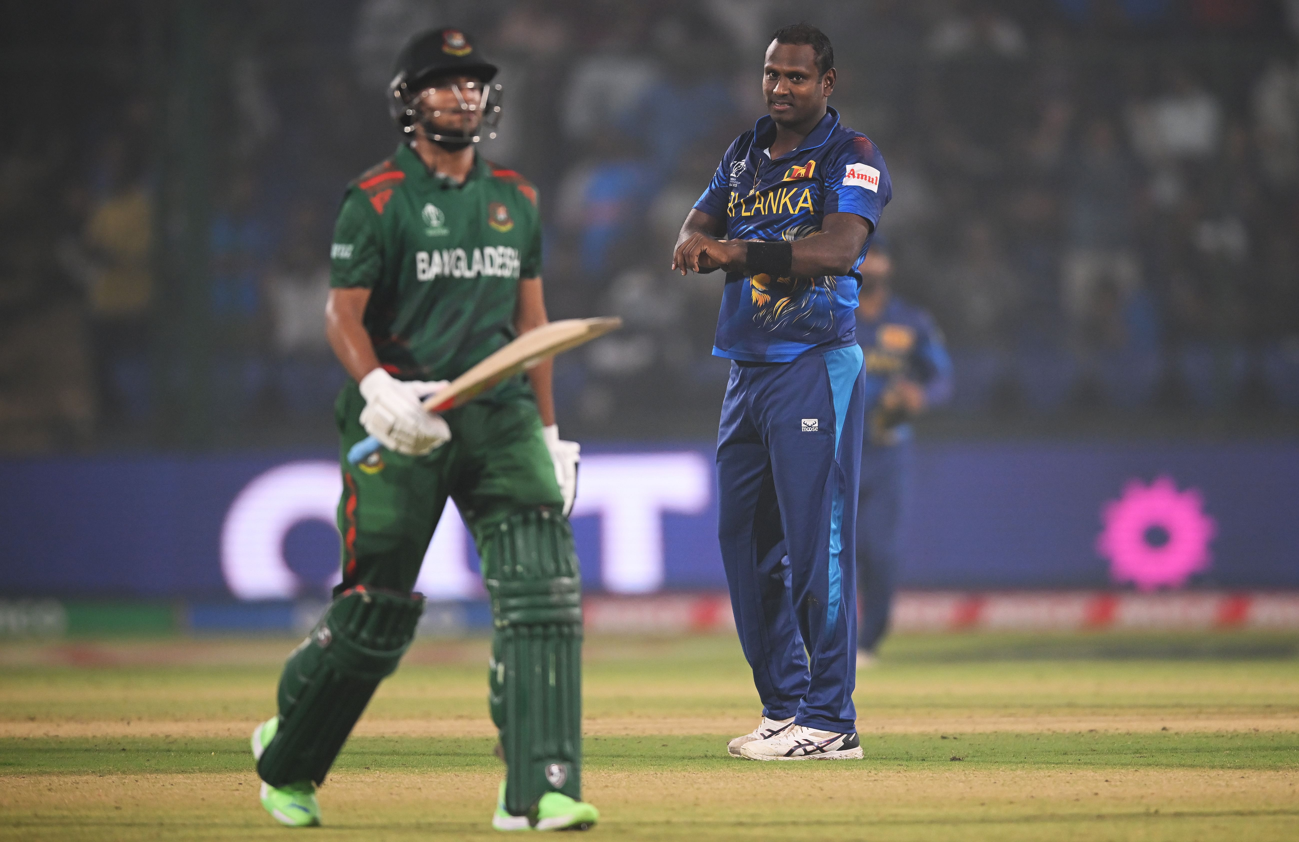 Bangladesh skipper Shakib Al Hasan didn’t retract the appeal based on an equipment malfunction - a broken helmet strap in this case. Later, Mathews found some poetic justice, dismissing Shakib and pointing at his wrist, stating it is time to go. Unadulterated drama.
