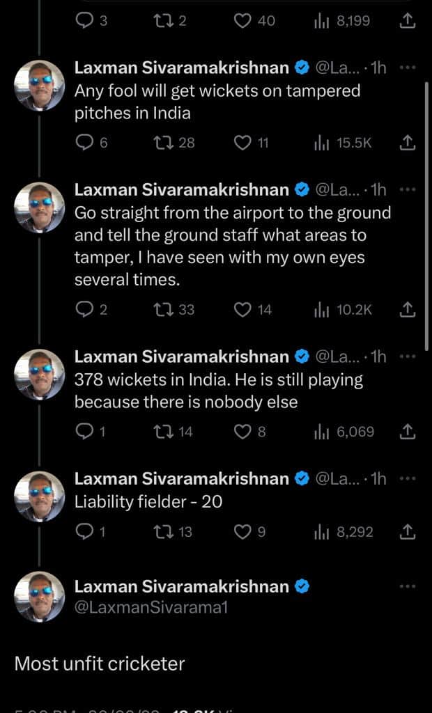 Laxman Sivaramakrishnan launches scathing attack on Ashwin