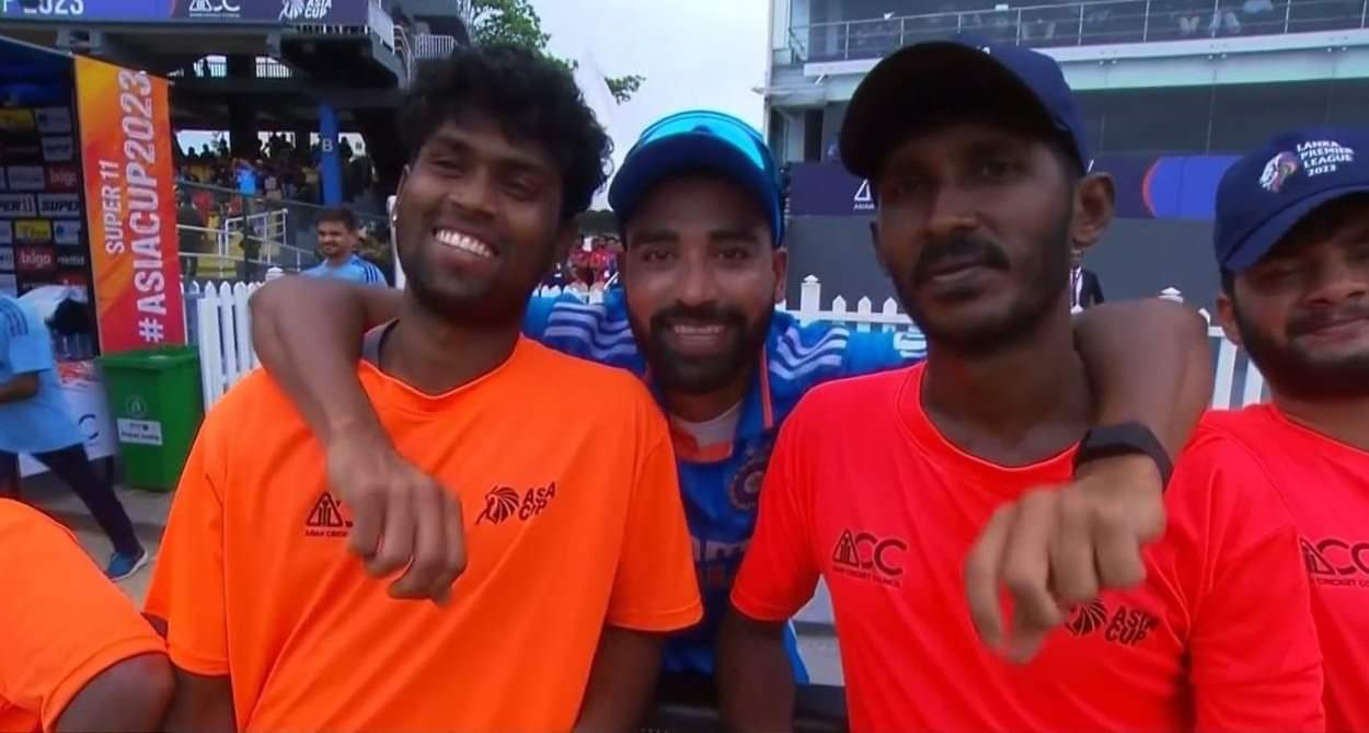 Mohammed Siraj with the Sri Lankan ground staff (whom he'd later go on to dedicate his POTM award to)