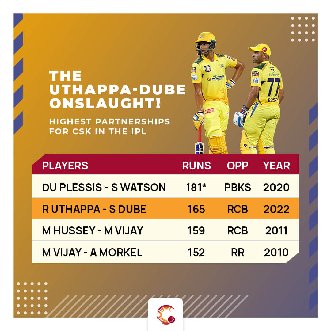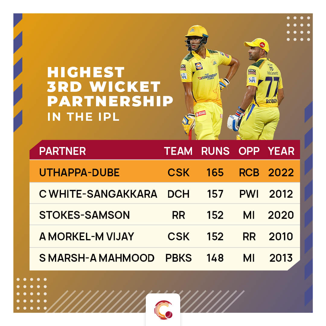 To add more, only once has a Chennai pair posted a higher partnership in the IPL. Faf du Plessis and Shane Watson in 2020 against Punjab Kings recorded an unbeaten 181-run opening stand, which is the highest. Also, this is the best third wicket partnership against Bangalore in the IPL and the third highest partnership for any wicket against Bangalore.