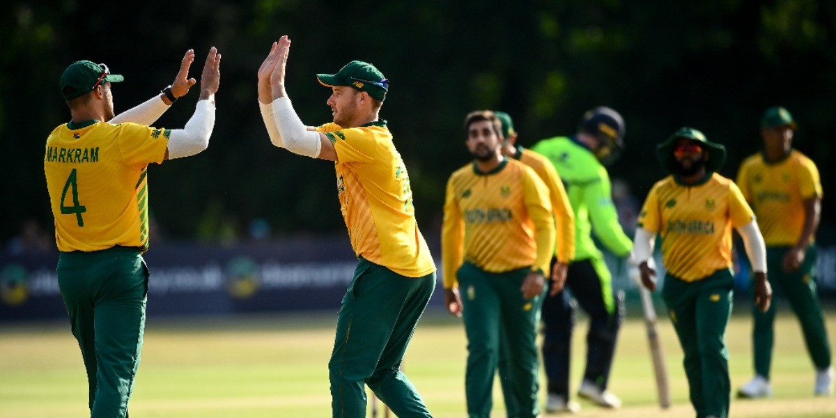 South Africa 159 for 5 in 20 overs (David Miller 75*, Wiaan Mulder 36; Paul Stirling 2 for 12) beat Ireland 117 in 19.3 overs (Shane Getkate 24, George Dockrell 20; Bjorn Fortuin 3 for 16) by 42 runs.