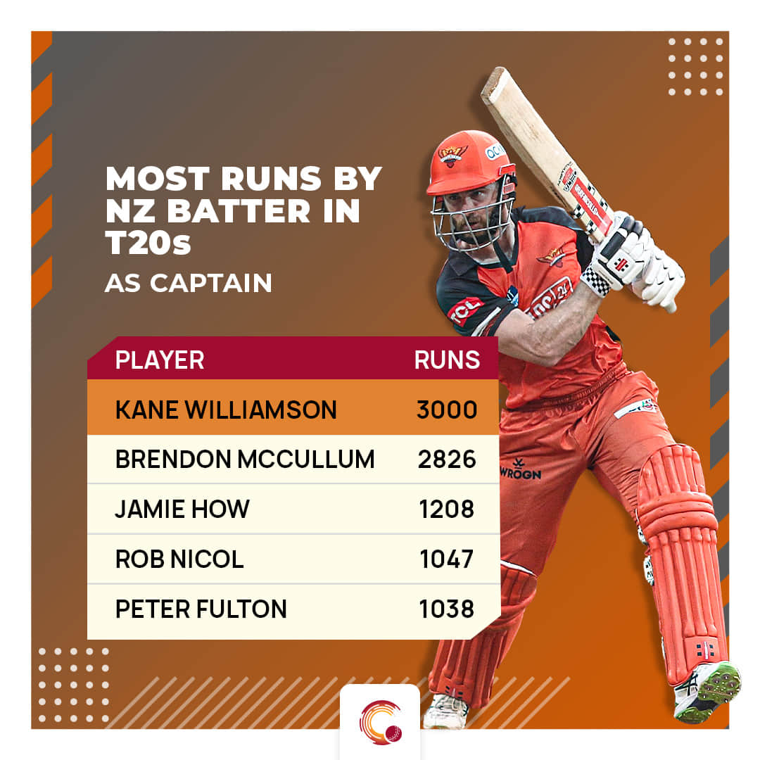 While Williamson was dismissed for four off 11 deliveries in pursuit of 208, the right-handed batter became the first New Zealand batter to score 3000 runs as captain in T20s.