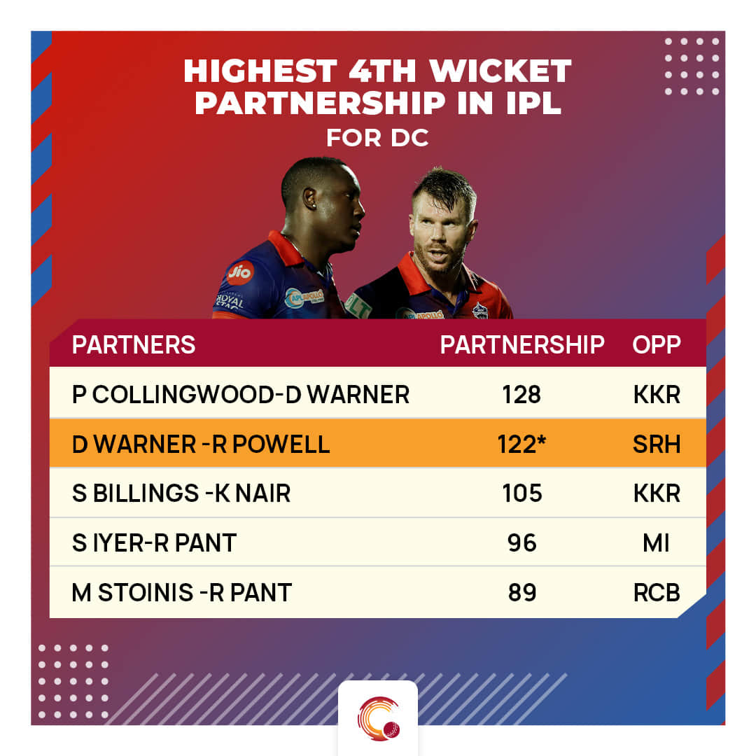 The duo added 122 runs in 11 overs, creating the record for the second-highest fourth-wicket partnership for Delhi Capitals in the competition.