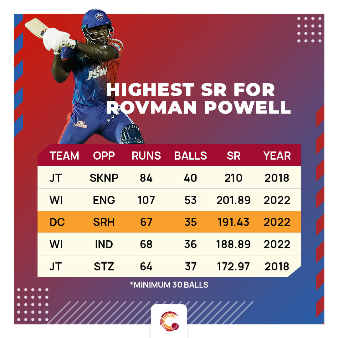 On a wicket conducive for batters, Powell joined Warner in the middle and started accumulating the ones and the twos to keep the scoreboard ticking.
