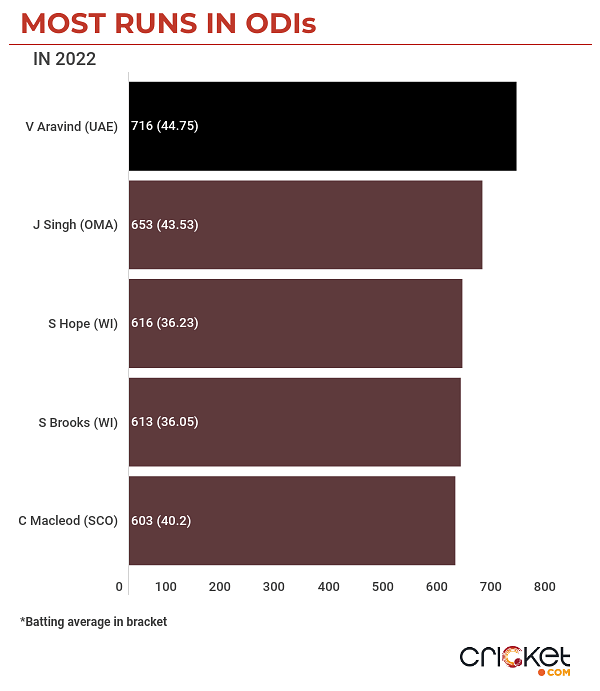 For UAE, 20-year-old Vriitya Aravind, who was recently elevated as the vice-captain of the side has been standout performer with the bat. With 716 runs, he has the most runs in ODIs this year and moreover, he played a pivotal role in UAE winning the Qualifiers.