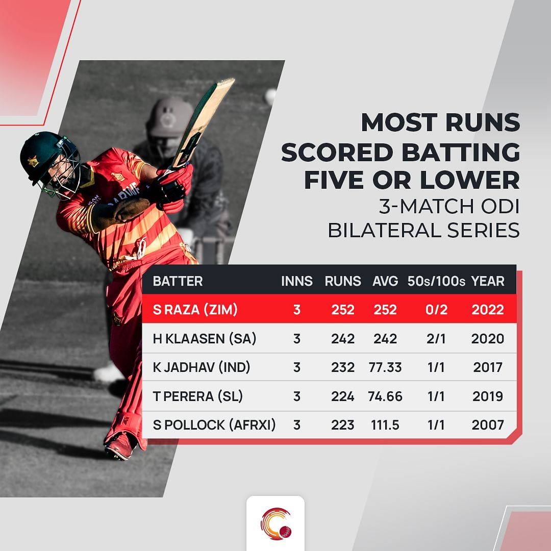 Sikandar Raza led from the front in the Qualifiers and in the white-ball series against Bangladesh that followed, Raza was at his best once again with the bat and then played the holding role with the ball to perfection as well. He led Zimbabwe’s stiff chase in the first couple of games, stitched huge match-winning partnerships with Regis Chakabva and Innocent Kaia.