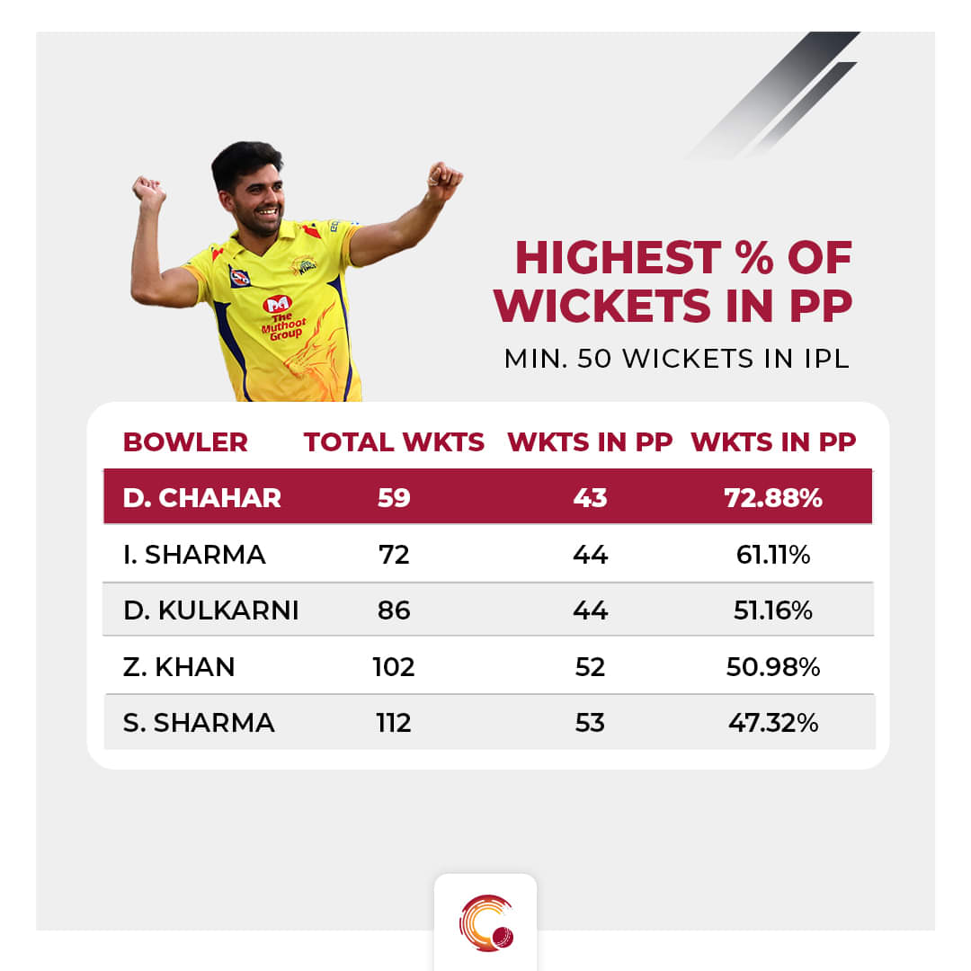 Undoubtedly Chahar is one of the most crucial pieces in the CSK jigsaw puzzle and is central to Dhoni’s plans to dominate the teams in the first six overs of the innings. Since his IPL debut in 2016, no bowler has had more wickets than the Rajasthan pacer in the powerplay or has more breakthroughs in the first over of the innings in the IPL. Second-placed Sandeep Sharma has bagged 14 wickets lesser despite playing five more games. If that is not enough to convince you of his impact, Chahar has 72.88% of his overall wickets in the first six overs, the most among bowlers who have bagged more than 50 wickets overall in the history of IPL.