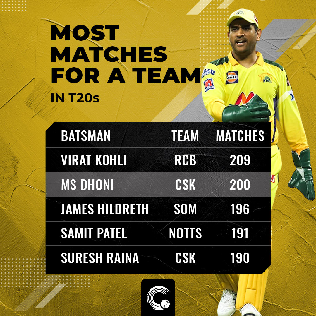 The captain cool registers yet another milestone in yellow. One of the most iconic players for the Chennai based franchise, MS Dhoni stepped out in his 200th game for the team in T20s. He became the second player in T20s to represent 200+ matches for a single franchise. Virat Kohli leads the list with 209 matches for Royal Challengers Bangalore. Out of those 200 matches, only once has Dhoni not led the side.