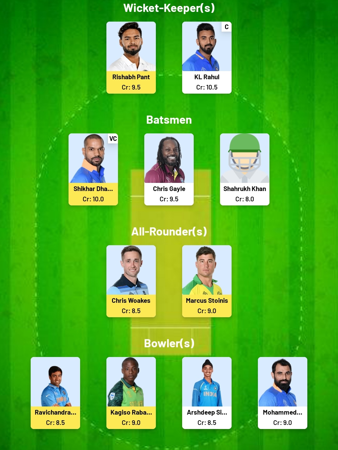 While you could go for the above team, you also have the option of choosing your own team from cricket.com’s Fantasy Research Centre. Based on algorithms, we have come up with one team.