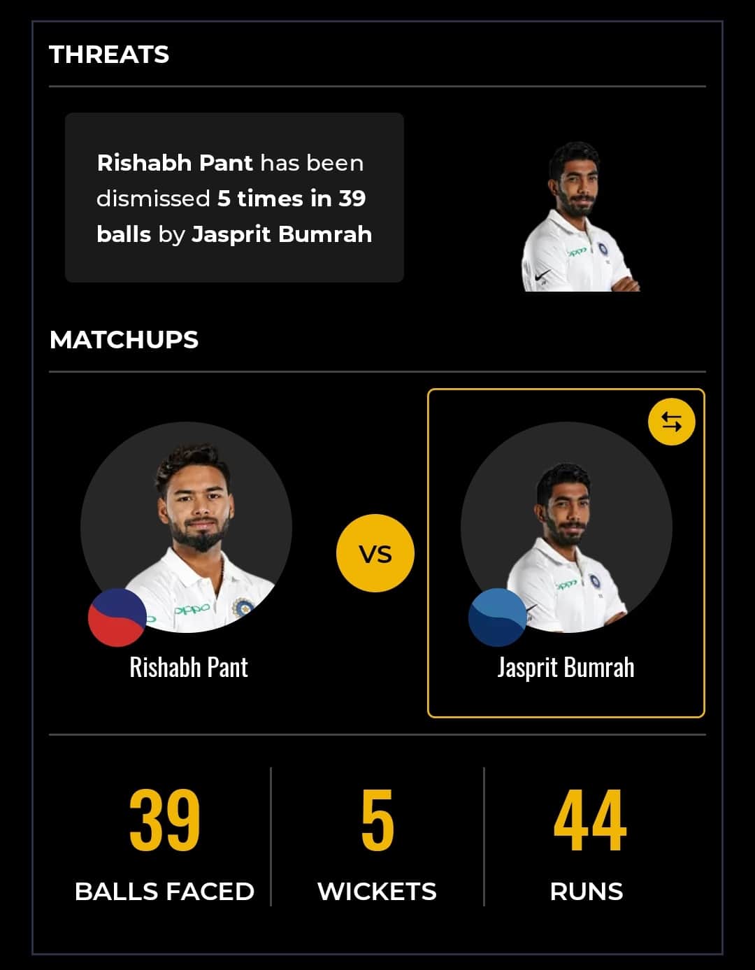 The two can be expected to lock horns once again since Pant will be tasked to give a finishing touch to the Delhi innings while Bumrah is one of the most acclaimed death overs specialists going around in world cricket.