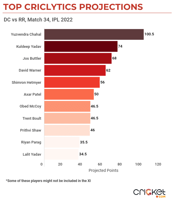 Our Criclytics Player Projection predicts Chahal to take 3-4 wickets in this match.