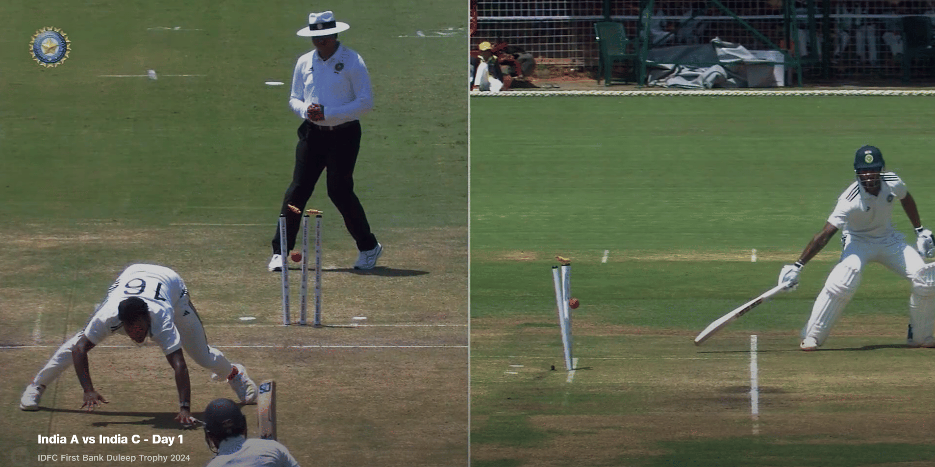 The left-hander, who was quite close to the crease, did everything with the exception of the basic: ground his bat. It resulted in an easy dismissal for India C, who reduced India A to 35/4 inside the first three hours of play in Anantapur.