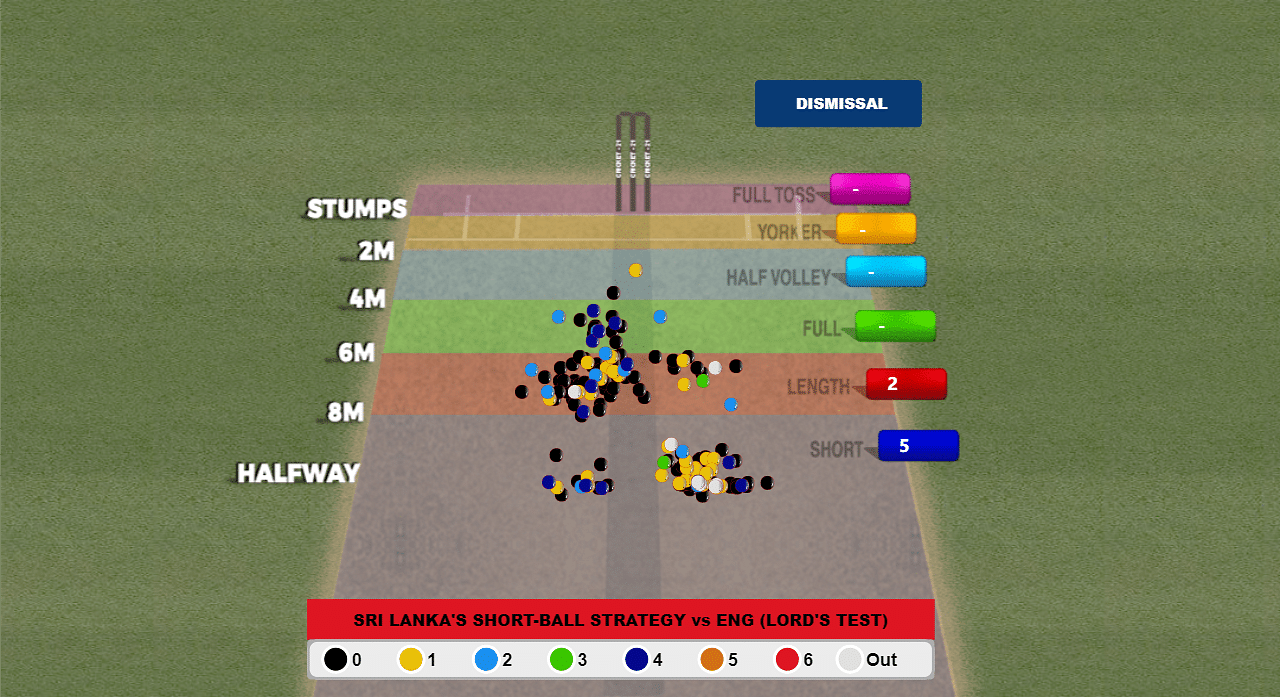 With their backs turned against the wall, Sri Lanka looked towards the short-ball strategy to fetch them wickets. It worked well for them, with five wickets on the day, in an area where the Sri Lankan pacers averaged just 11 with Asitha Fernando and Lahiru Kumara picking six wickets between them in the second innings.